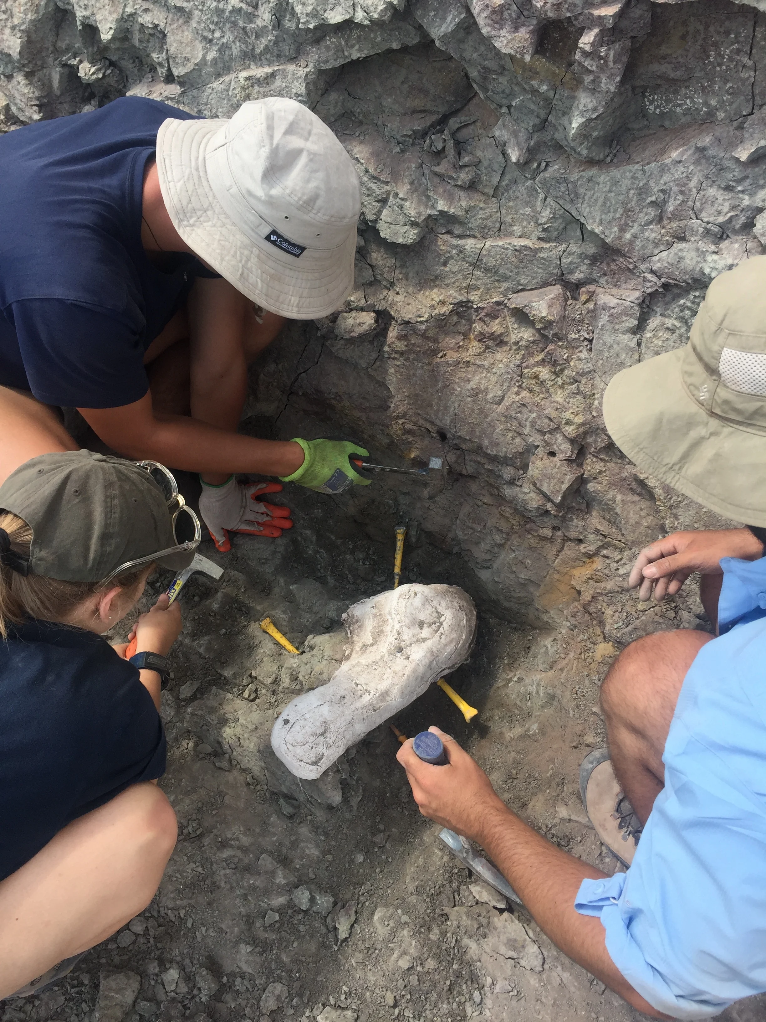 Dr. Mike D’Emic demonstrates "the lick test” to determine if we’ve found a fossilized bone or a rock.